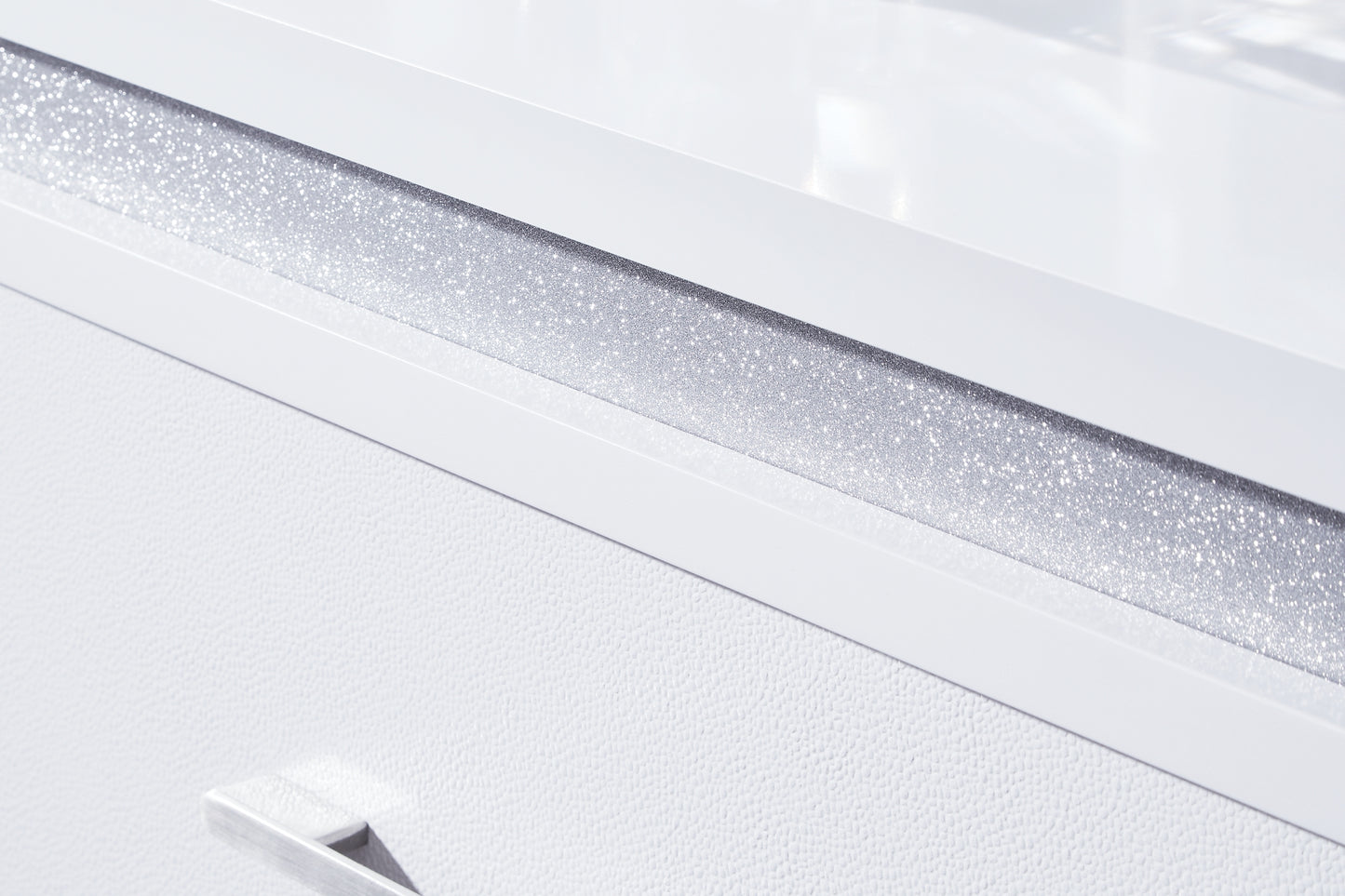| Details | Made with hardwood solids and MDF substrates, White paint finish, Inset acrylic glitter accents, Horizontal metal drawer pulls, 4 drawers with fully finished interiors, dovetail construction and heavy-duty ball-bearing side glides, Textured drawer fronts | |